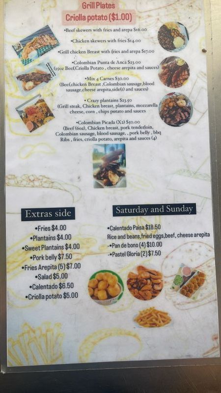 Colombian steaks, Colombian appetizers, artisan burgers, Peruvian ceviches, breakfast